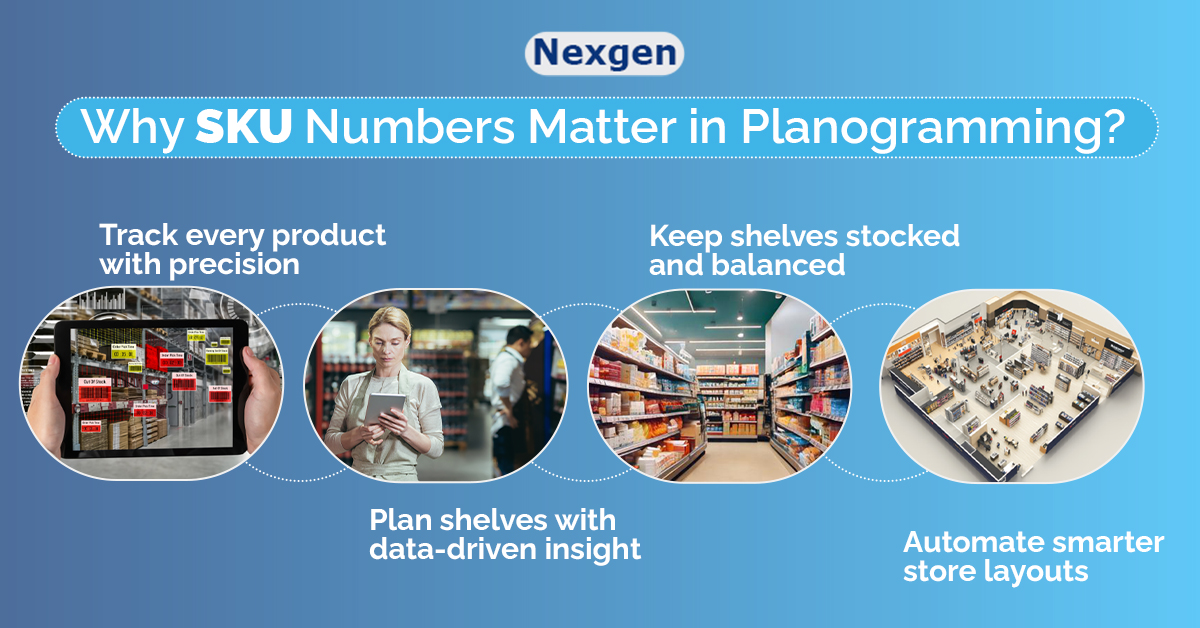 SKUs help retailers monitor stock levels and prevent out-of-stock or overstock situations. When integrated with planogram software, SKU data ensures that shelves are consistently replenished with the right products.