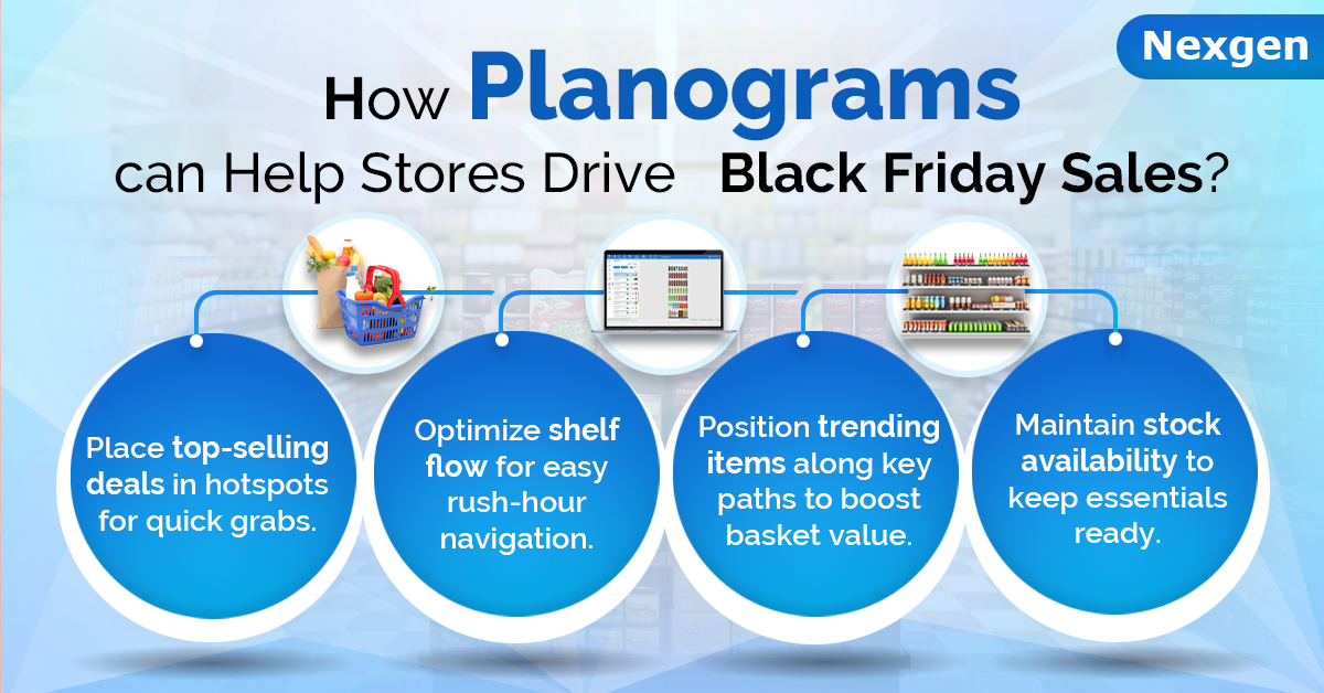 Planograms are essential during Black Friday when every inch of shelf space matters. They help you create visually organized displays, place fast-moving products in accessible spots, and maintain consistency across store staff.
